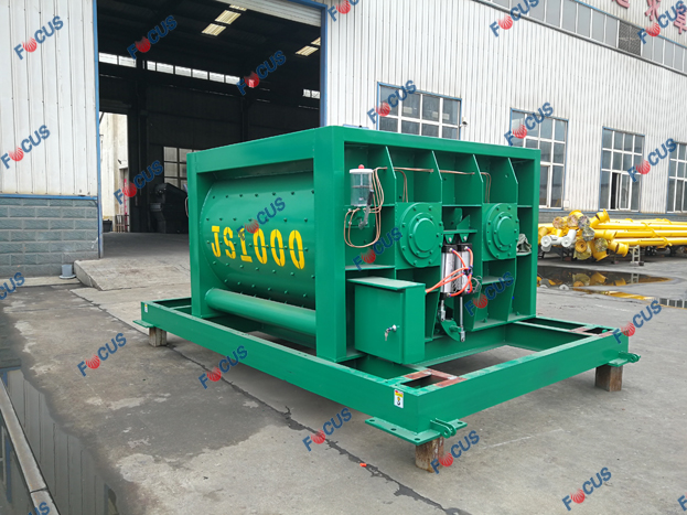 The whole plant, including the JS1000 concrete mixer, PLD1600-4 aggregate batcher, bolted cement silos, screw conveyors, even the weighing system, were painted in green as requested.