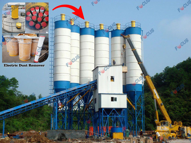 Electric dust remover, also known as electrostatic precipitator, removes dust by applying electrostatic force. It is commonly used in cement industries, including concrete batching plants.